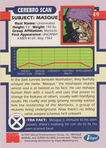 Part of the 1992 Marvel Universe collector card release featuring legendary Marvel characters, power ratings, and detailed character profiles.